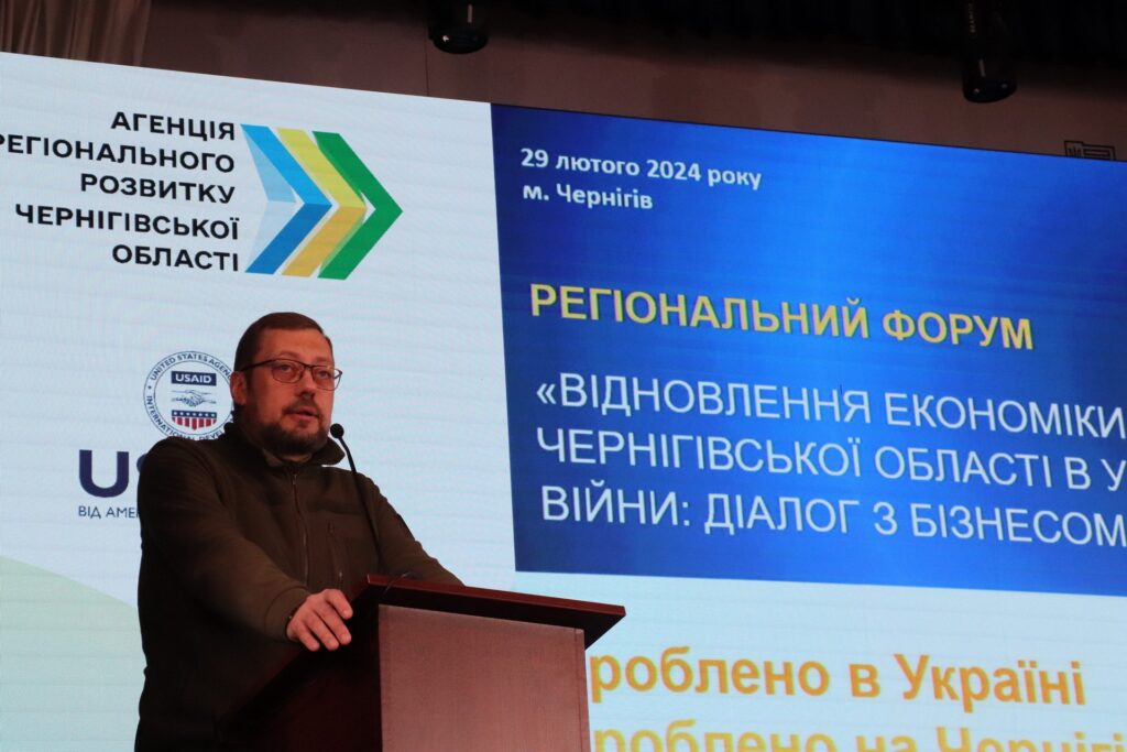 Актуальні проєкти відбудови та налагодження економічної спроможності презентували підприємцям на регіональному форумі «Відновлення економіки Чернігівської області в умовах війни: діалог із бізнесом», організованому обласною військовою адміністрацією. Захід відбувся за підтримки Проєкту USAID «Зміцнення громадської довіри (UCBI)» і став майданчиком обговорення нової ініціативи, спрямованої на підтримку вітчизняних товаровиробників.