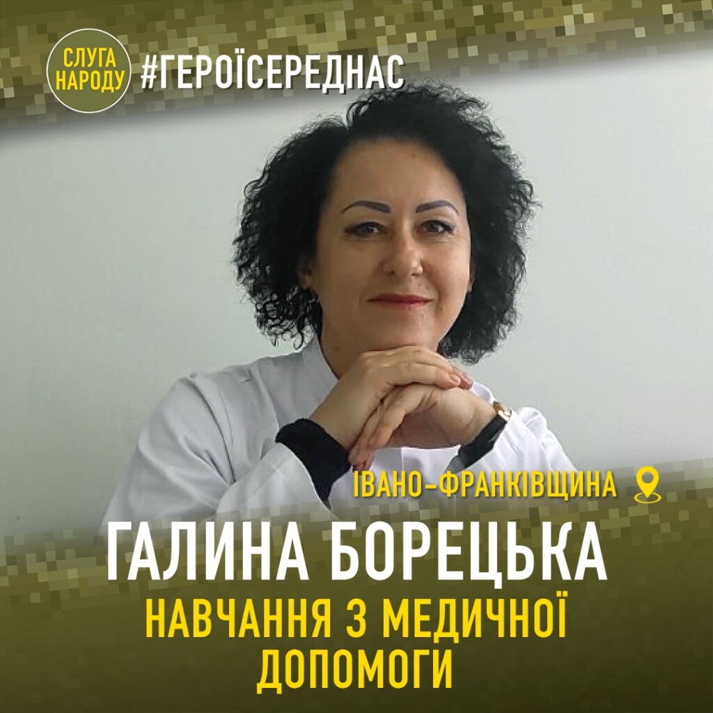 Вміти надавати першу медичну допомогу важливо навіть в мирний час. А під час війни ці навички стають вкрай важливими. Навчання для цивільного населення організувала Галина Борецька, депутатка Івано-Франківської районної ради від «Слуги Народу», яка до початку повномасштабної війни працювала в Галицькій лікарні.