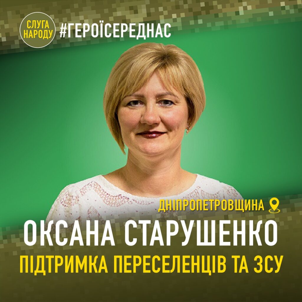 Депутатка передусім допомагає воїнам ЗСУ та ТрО. Збирає кошти на військову амуніцію, знаходить необхідне, передає на фронт. Окрім того, Оксана Старушенко на межі сил безперестанку шукає та доставляє продукти, одяг, предмети побуту, дитяче харчування, підгузки та засоби гігієни переселенцям, які оселилися у її рідному місті Павлограді.