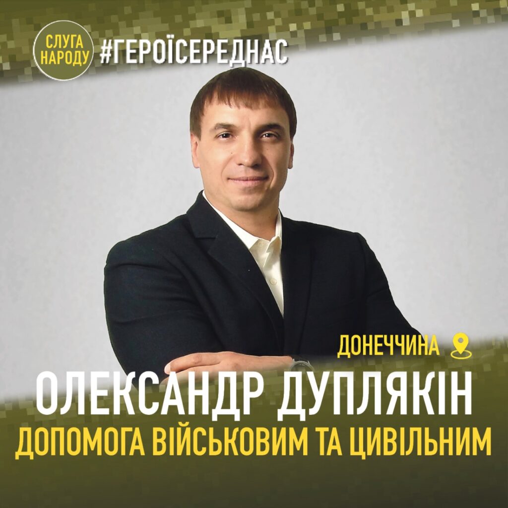 Депутат Краматорської міської ради від партії «Слуга Народу» Олександр Дуплякін з початком повномасштабної війни евакуювався у Київ, де у співпраці з народним депутатом України Володимиром Крейденком ініціював надання допомоги переселенцям, мешканцям прифронтових міст, правоохоронцям та українським захисникам.