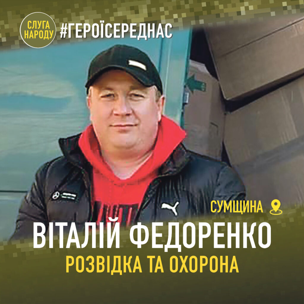 Бути першим в усьому. За таким принципом Віталій Федоренко жив у мирний час, не зрадив йому і під час війни. Одним із перших записався в загін охорони порядку міста, залучив більше десятка небайдужих і сміливих людей. Нехтуючи власною безпекою, без зброї, брав участь у затриманні диверсанта.