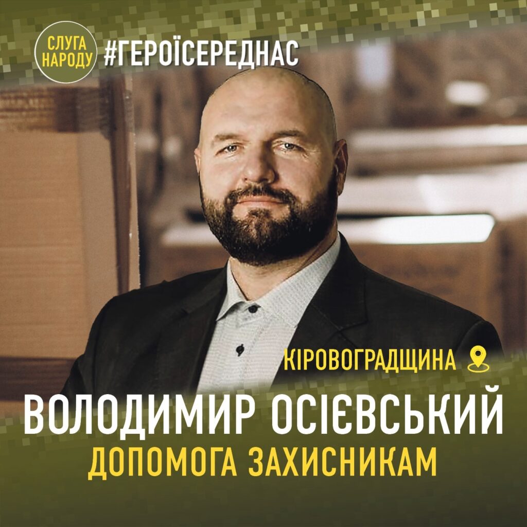 Голова Добровеличківської громади Володимир Осієвський, представник «Слуги Народу», щодня не лише опікується своєю громадою, а й ініціює збір та доставлення гуманітарних вантажів, продовольства та автомобілів для ЗСУ.
