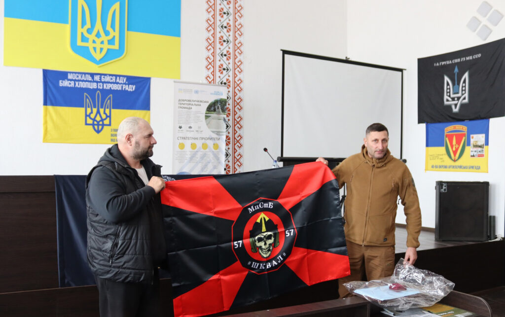 Кошти на автівку зібрали під час ярмарку на підтримку ЗСУ. У знак вдячності боєць передав громаді прапор 57-ї окремої мотопіхотної бригади імені кошового отамана Костя Гордієнка, відзнаку «Крила Янгола» та почесний нагрудний знак.
