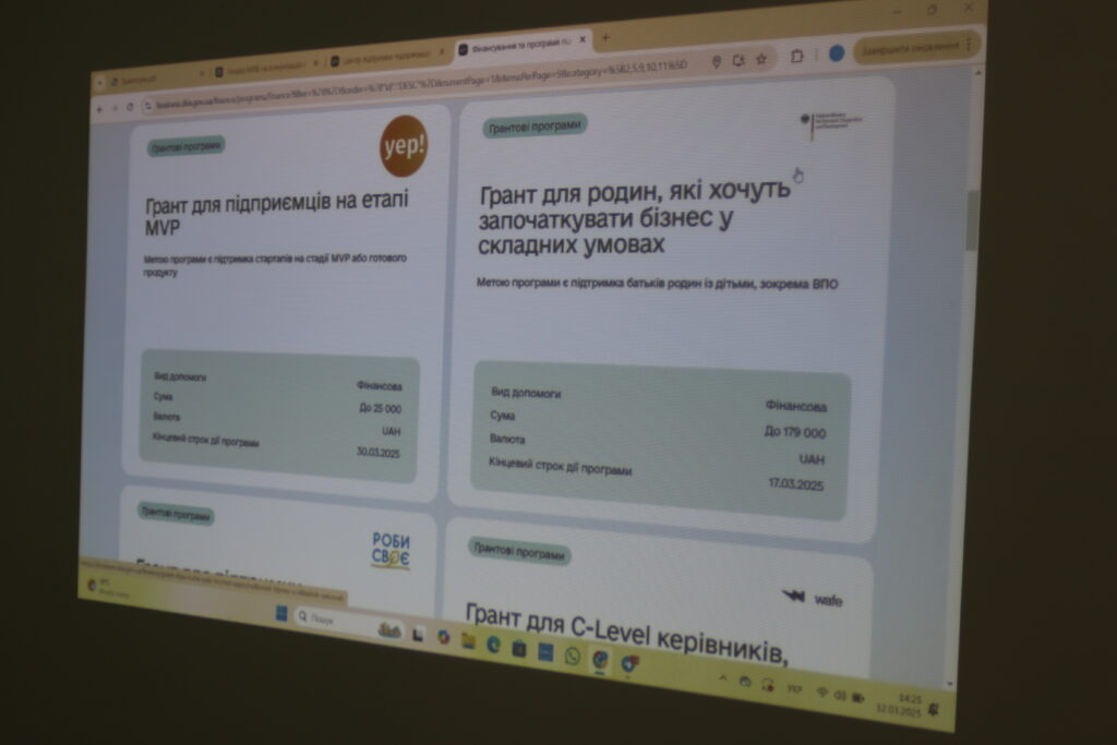 На заході йшлось про інструменти та методи ведення бізнесу, зокрема через участь у грантових програмах підтримки підприємців. Йшлось також і про державні й місцеві ініціативи, додаткові можливості для окремих соціальних груп – ветеранів, жінок, людей з особливими потребами.