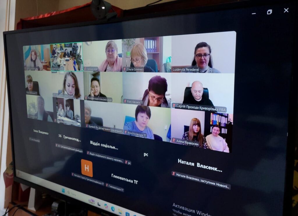 Участь у розмові взяли керівники та профільні заступники всіх громад району, а також Людмила Передерей, експертка з взаємодії з регіонами та громадами Проєктного офісу Міністерства соціальної політики України.