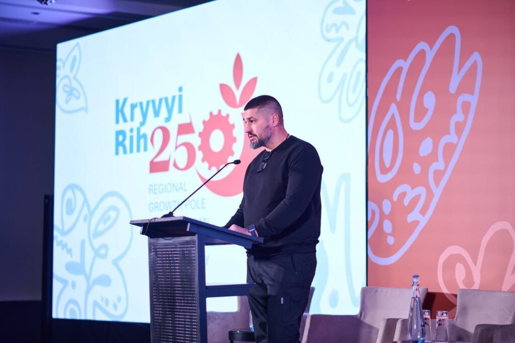 Масштабний захід об’єднав представників міністерств, міжнародних партнерів та потенційних інвесторів. Про сьогодення та плани району розповів начальник Криворізької РВА, депутат облради від «Слуги Народу» Євген Ситниченко.