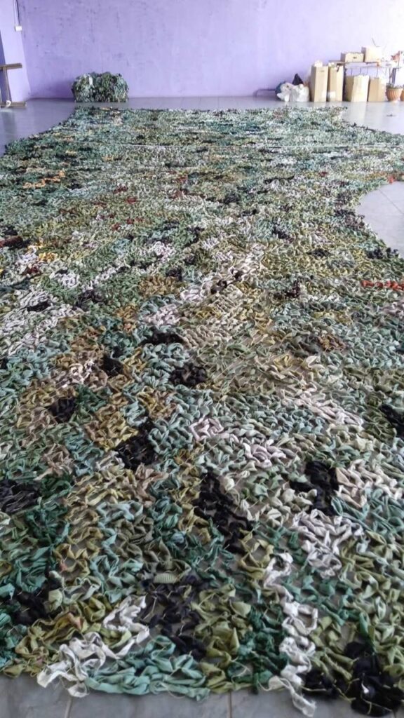 Сплетені дбайливими руками, щоб захистити від ворожого ока: жительки Широківщини продовжують виготовляти маскувальні сітки для ЗСУ