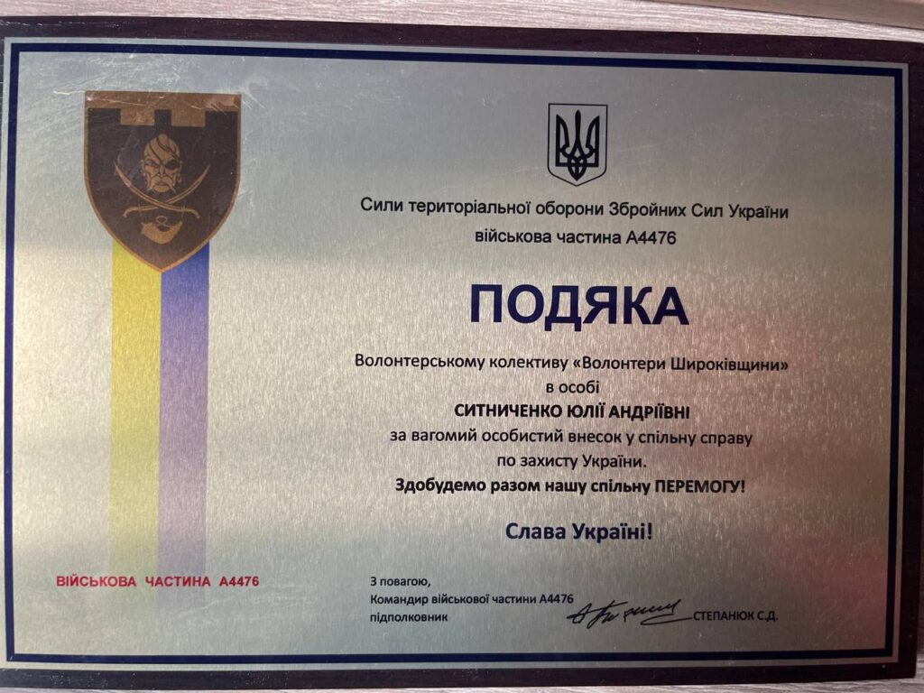 Відпочатку матеріалами допомагали широківці. А з часом розпочали закуповувати за підтримки небайдужих людей. Так вдалось покращити характеристики виробів – кольори тепер точно співпадають з необхідними, а вага сіток менша. Колектив майстринь неодноразово отримував подяки від військових підрозділів.
