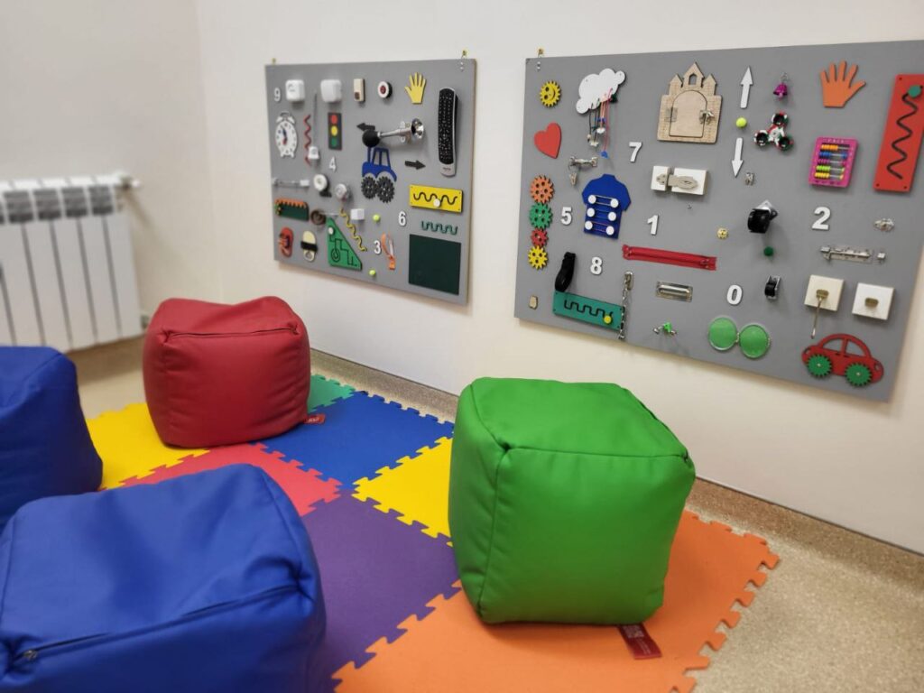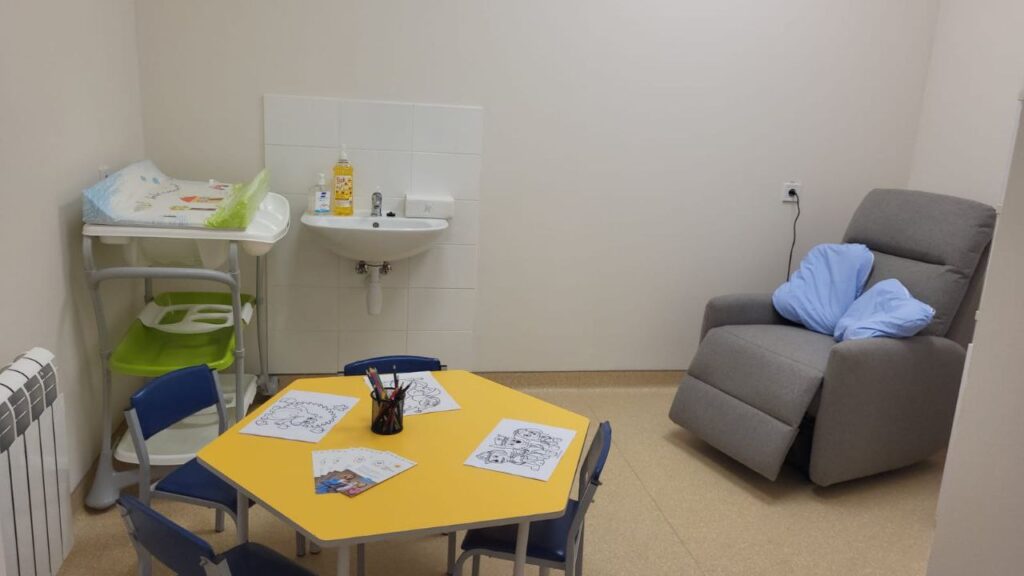 🟢 Відділення матері та дитини. Простори затишні й мають певне зонування – є ігрові зони для малечі, зони для матусь, зона очікування для сімей.