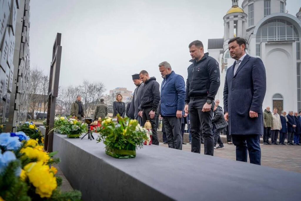 Президент України Володимир Зеленський і перша леді Олена Зеленська вшанували пам’ять убитих українців біля меморіалу, розташованого на території церкви Святого апостола Андрія Первозваного у Бучі.