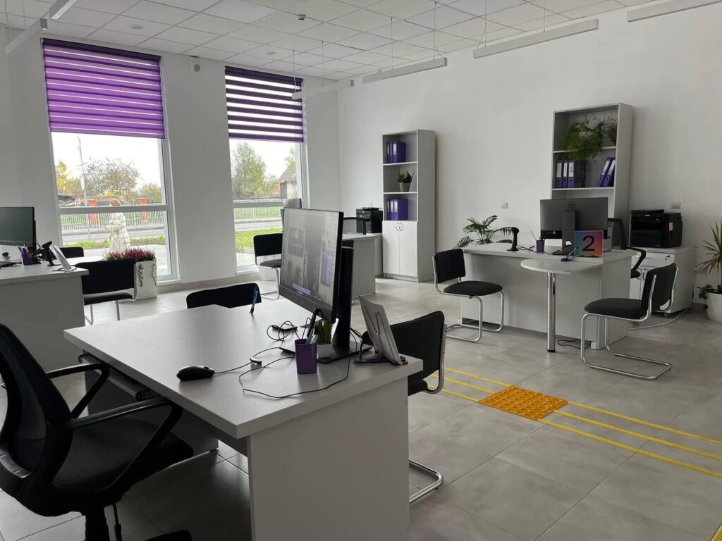Вартість проєкту – майже 14 млн гривень. Сучасний ЦНАП у громадах – це також простір безбарʼєрності та інклюзії. Для людей із інвалідністю там встановили окремий санвузол, пандус, інформаційні та навігаційні таблички шрифтом Брайля.