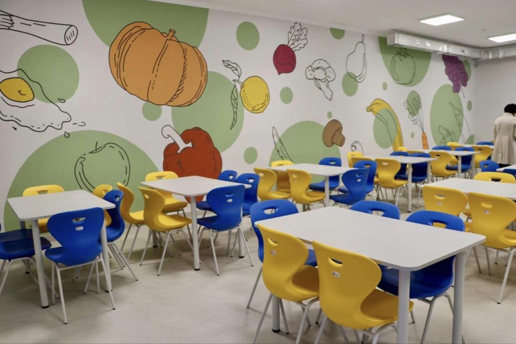 У новій школі облаштували сучасні класи, спортзал, харчоблок, внутрішні вбиральні, а також інклюзивні класи, на сходах встановили підйомні платформи, а вихід на заднє подвір’я обладнали пандусом.