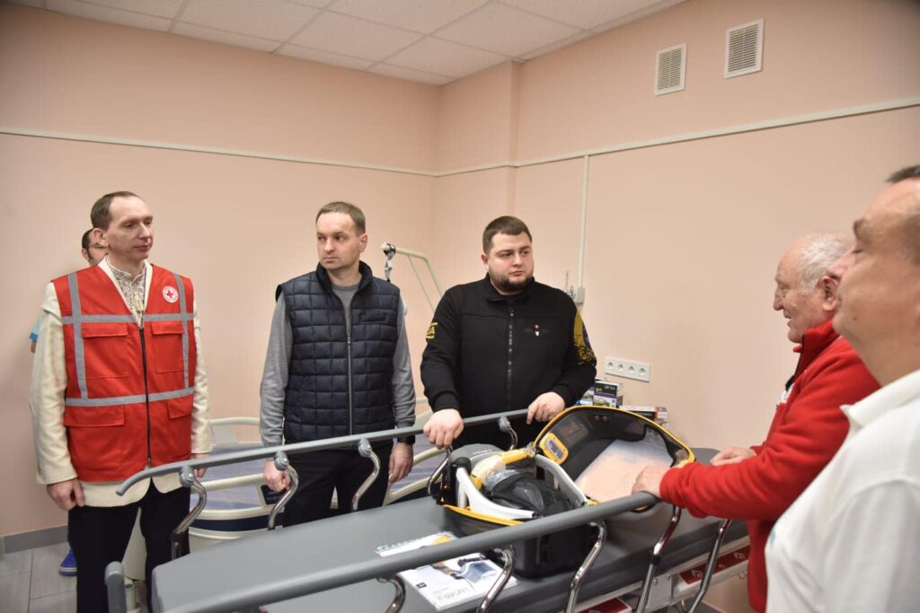Відтак, у центр доставили 25 сучасних електроліжок для пацієнтів, 20 мобільних каталок, монітори контролю життєво важливих показників, комплекти (наплічники) для надання першої допомоги, автоматичні прилади для непрямого масажу серця, тонометри, пульсоксиметри, діагностичні ліхтарики для лікарів, фонендоскопи, електронні термометри, хірургічні нитки та інші роздаткові медичні матеріали.