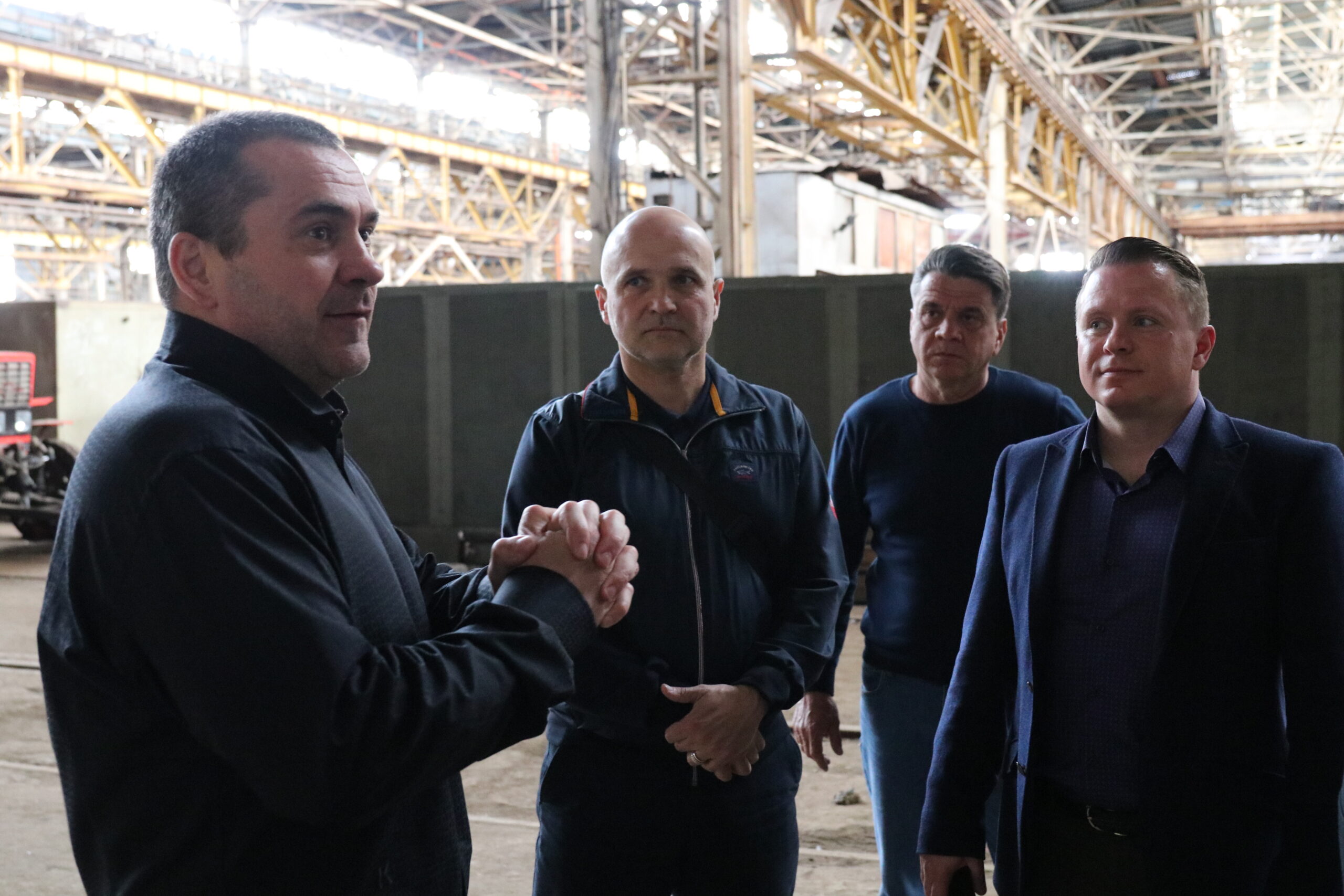 Представники партії «Слуга Народу» – начальник Миколаївської ОВА Віталій Кім, очільник облорганізації партії, народний депутат Олександр Пасічний, нардеп Ігор Копитін, перший заступник голови Миколаївської обласної ради Антон Табунщик та депутат Миколаївської райради Олександр Балакін – відвідали завод, аби ознайомитися із його роботою в умовах повномасштабної війни.