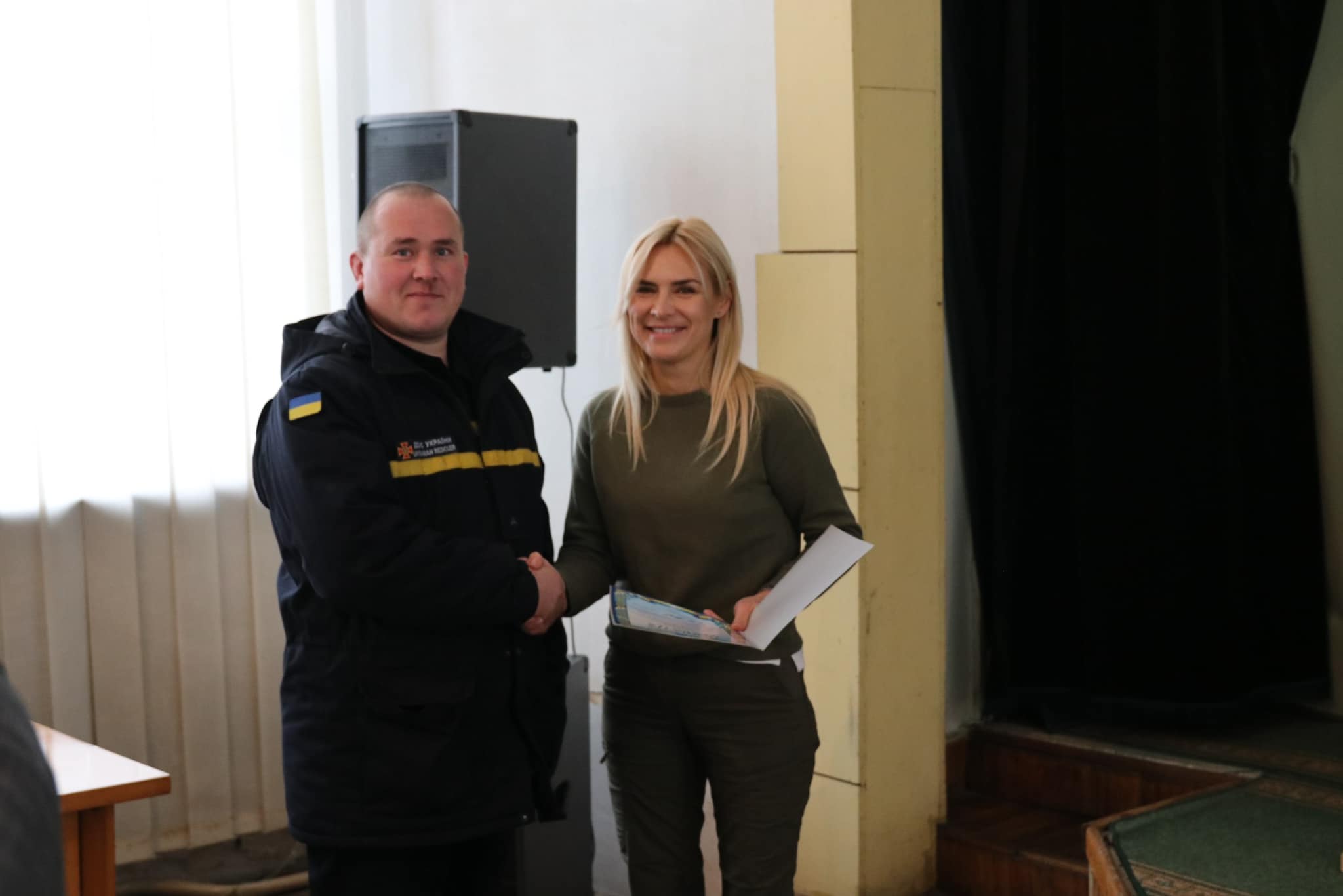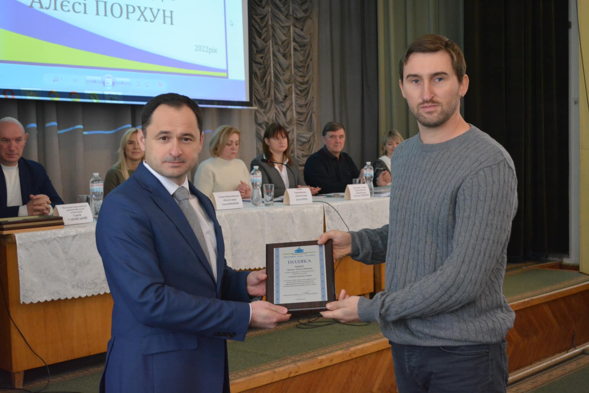 В урочистих заходах перед засіданням також взяли участь представники партії «Слуга Народу» – очільниця облорганізації партії Ганна Замазєєва та народний депутат Максим Дирдін. Вони нагородили відзнаками та грамотами пожежних рятувальників та комунальників, які щодня борються за безпеку життя та комфорт первомайців.
