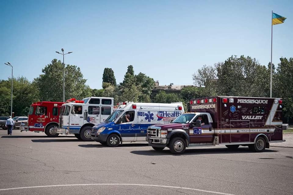 Одещина отримала зі США чергову важливу допомогу: карети швидкої допомоги та пожежний автомобіль. Доставив їх віцепрезидент OSF HeaithCare Кріс Менсон.