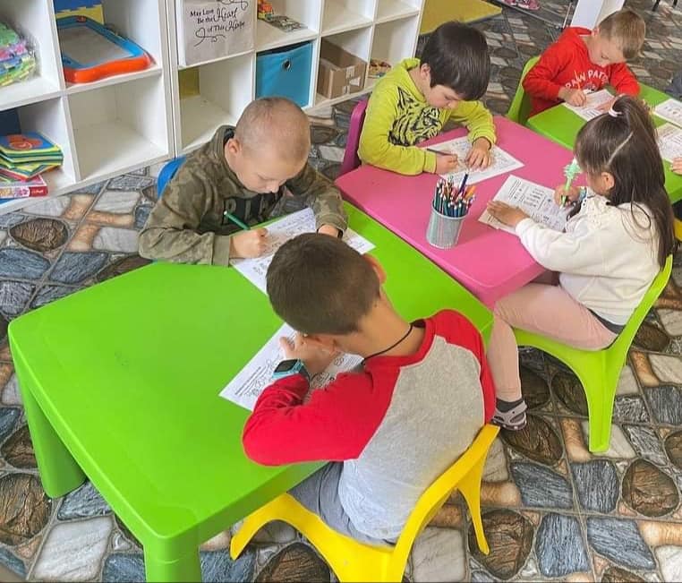 У Соціальному Хабі діти-переселенці та постраждалі від війни вчаться робити іграшки з природних матеріалів, вивчають іноземні мови, малюють, отримують знання, необхідні у початковій школі. Спеціалісти стверджують, що такі заняття зменшують емоційне напруження у малюків.