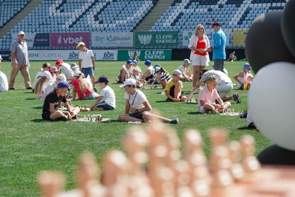 В Одесі на стадіоні "Чорноморець" вперше в історії України одночасно 100 дітей зіграли в шахи