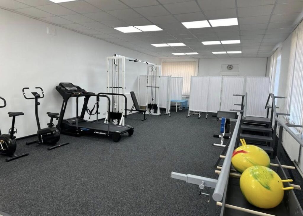 Така зала обладнана кімнатами для лікувального масажу, ультразвукової фізіотерапії (застосовується місцево для зменшення болю, стимуляції м’язів і покращення кровообігу), для магнітотерапії (застосовується для зменшення болю, покращення кровообігу, розслабляючого ефекту в м’язах і суглобах, прискорення загоєння ран та опіків), біговою (ходовою) доріжкою, велотренажерами, реабілітаційними брусами, блочною рамою для поліпшення амплітуди рухів у верхніх і нижніх кінцівках та спині, а також ерготерапевтичним столом, обладнаним пристосуваннями для тренування точних рухів верхніх кінцівок та адаптації пацієнтів до побуту.