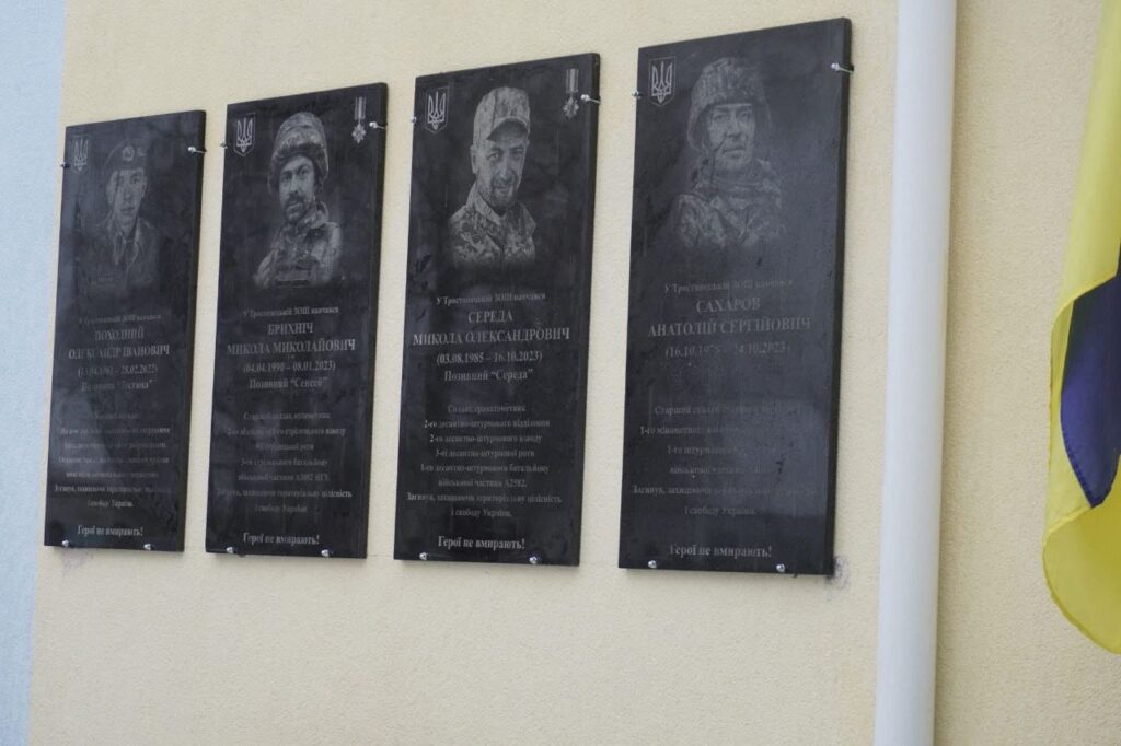 У Тростянецькій філії Щербанівського ліцею вшанували випускників-захисників: Олександра Походного, Миколу Брихніча, Миколу Середу та Анатолія Сахарова – воїнів, які добровільно стали на захист України й загинули в боях на Донеччині та Запоріжжі.