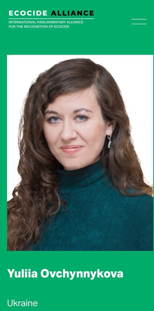 Народна депутатка від фракції «Слуга Народу» Юлія Овчинникова стала першим українським парламентарем, яка увійшла до Міжнародного парламентського альянсу за визнання екоциду.