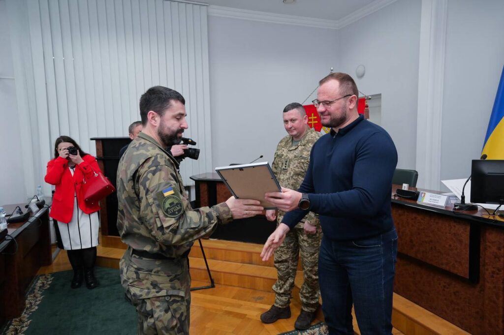 У Луцькій міській раді нагородили державними відзнаками інструкторів тренувального центру «Тернове поле» БОР Луцьк. Нагадаємо, заступником командира добровольчого формування є голова фракції «Слуга Народу» у міській раді Луцька – депутат Роман Бондарук.