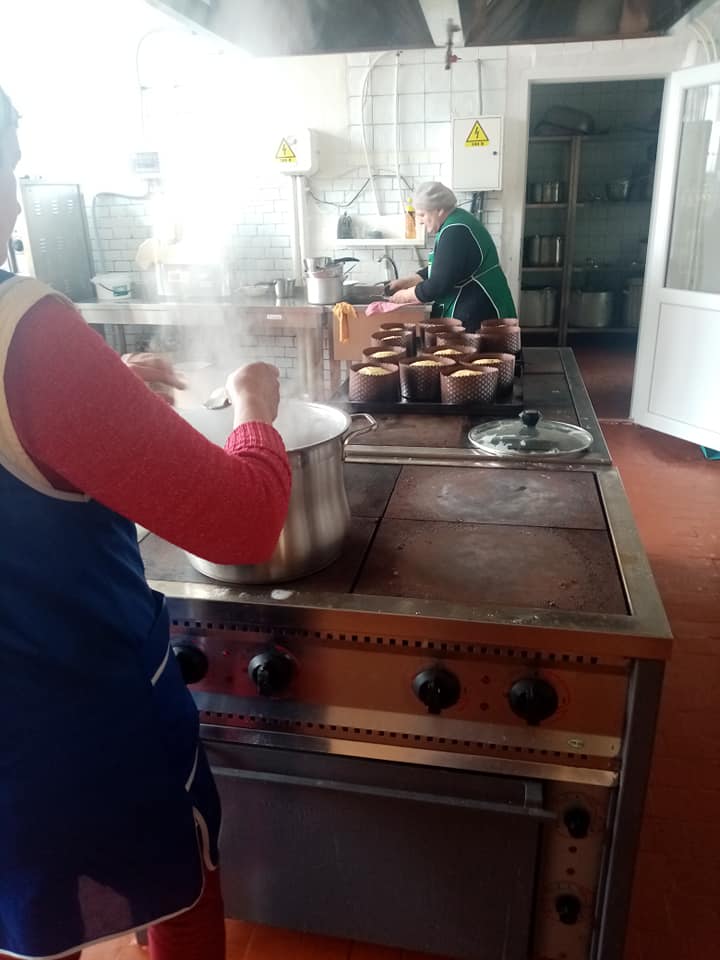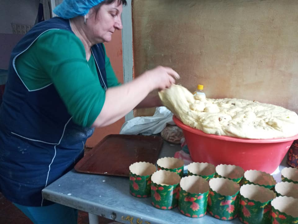 Волонтери з «Благодійної їдальні» випікають паски, а також готують м’ясо та ковбасу, які відправлять нашим бійцям на передову.