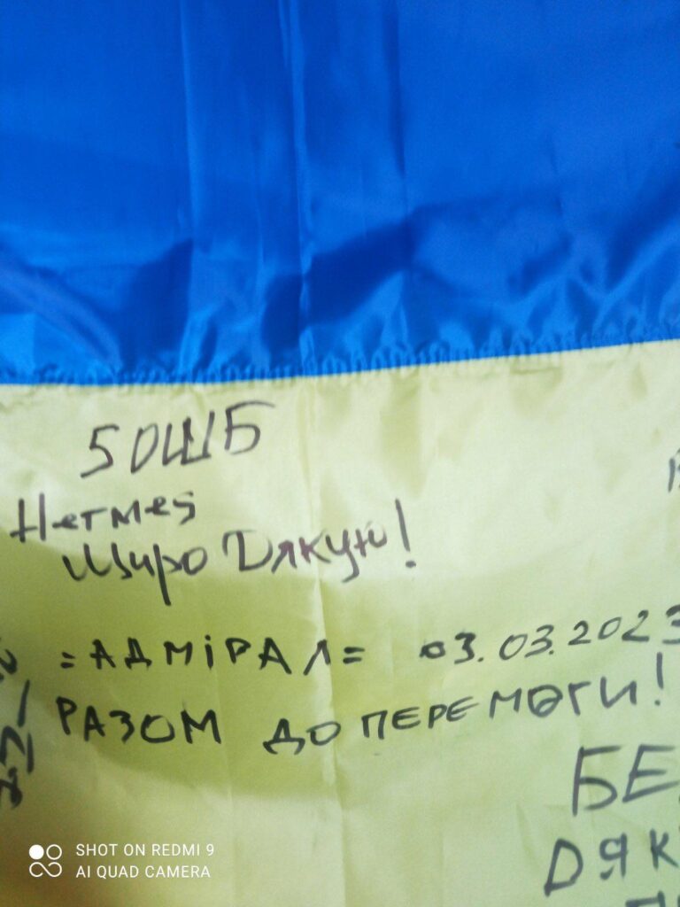 «Старшокласники, батьки та вчителі після уроків робили смаколики. Корисні й натуральні із наших поліських продуктів. Однак приємною несподіванкою стало те, що бійці різних підрозділів передали на знак вдячності український стяг. Аж «мурашки бігли по шкірі», коли тримали державний прапор, підписаний руками людей, які творять Велику Перемогу. Пишаємося, що маємо честь бути знайомими та підтримувати», – додала пані Ольга.