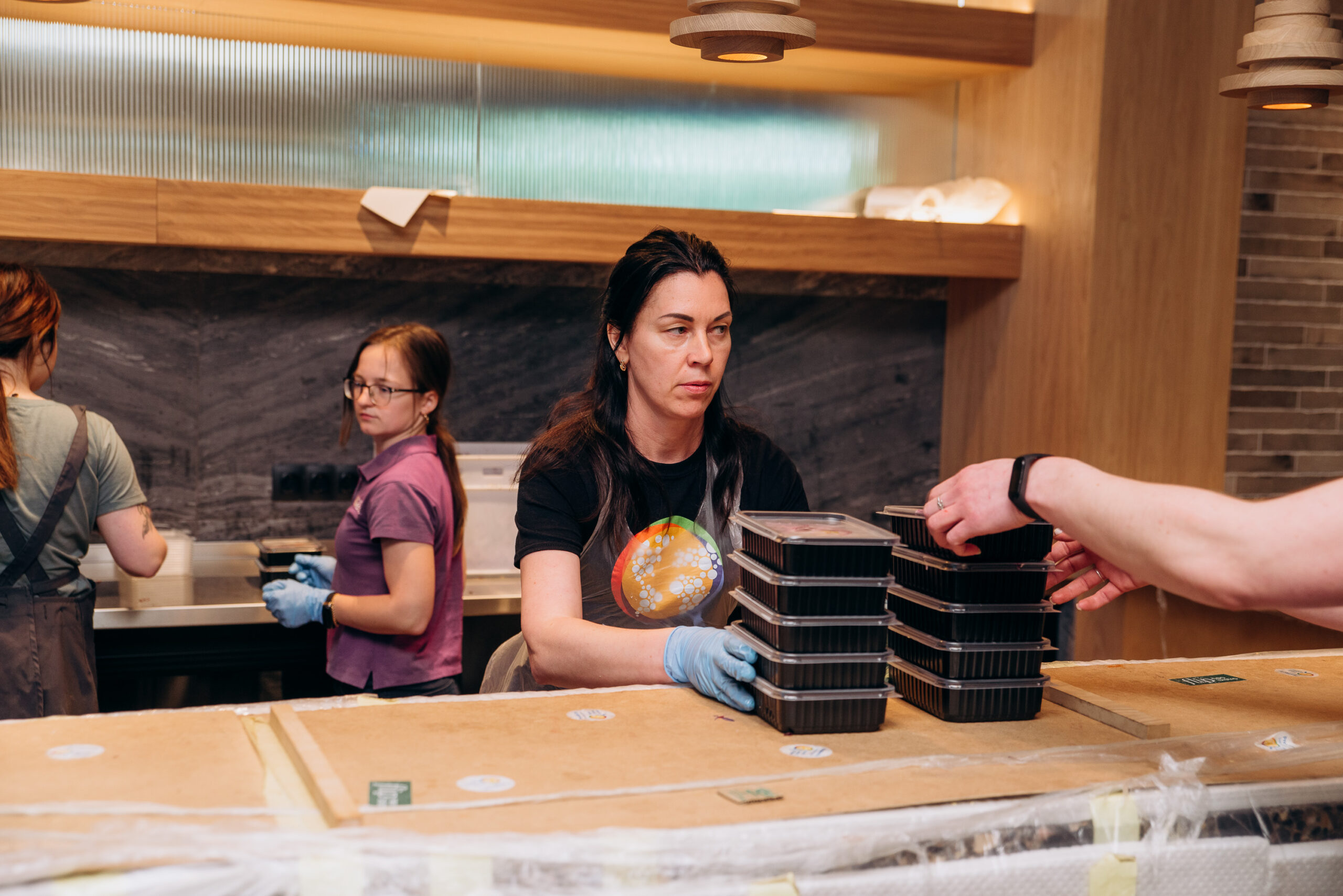 І не просто їжу, а справжні смаколики. У меню бургери, картопляні діпи, смачнюща випічка та ще багато чого. Не просто позбавити відчуття голоду, а смачно нагодувати – тут це головне правило. Щодня цей «народний ресторан» видає 600-700 кг їжі, приблизно 1300 порцій. З продуктами для цього допомагає штаб Дніпропетровського обласного осередку «Слуги народу».