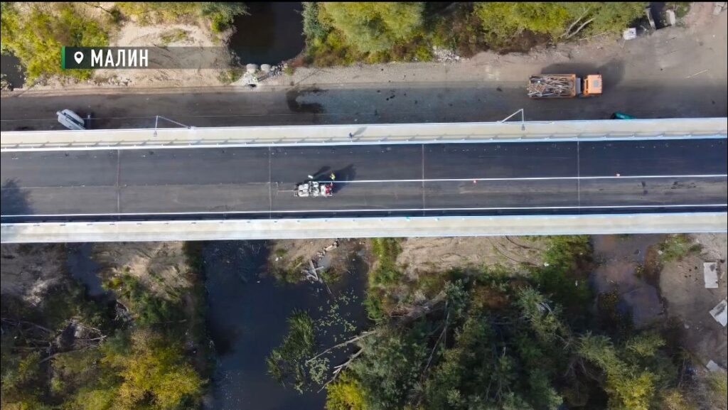 27 вересня минулого року, в день проведення Першого форуму з відновлення Житомирщини, Міністерка економіки та інфраструктури Естонії Рійна Сіккут повідомила, що в рамках відновлення Житомирщини її країна допоможе відбудувати малинський міст, який був зруйнований російською ракетою 6 березня 2022 року, і виділить на це 1 мільйон євро.