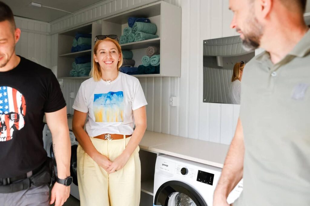 За її словами, там встановили душові, бойлер, пральні й сушильні машини, дизельну установку, а у вільних відсіках залишили достатній запас засобів гігієни, медикаментів, мийних засобів, рушників і чимало іншого.