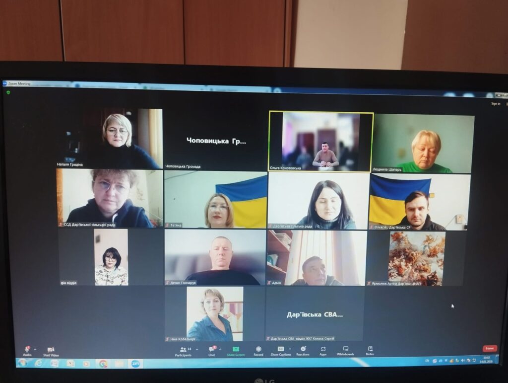 Нещодавно відбулася онлайн-зустріч робочих груп Чоповицької селищної ради та Дар’ївської сільської ради Херсонської області у межах національного проєкту «Пліч-о-пліч: згуртовані громади» задля налагодження партнерських відносин.